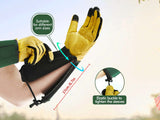PUNCTURE-PROOF BACK & EXTRA LONG SLEEVES - Reinforced pigskin leather patches on knuckle and fingertips ensure wear resistance & puncture resistance, to prevent hands from puncture, bloody and painful scratches; 15mm freely opened and closed long cuff with magic sticky for easily taking on & off, elastic buckle help tighten the sleeves which keep dust & insects out